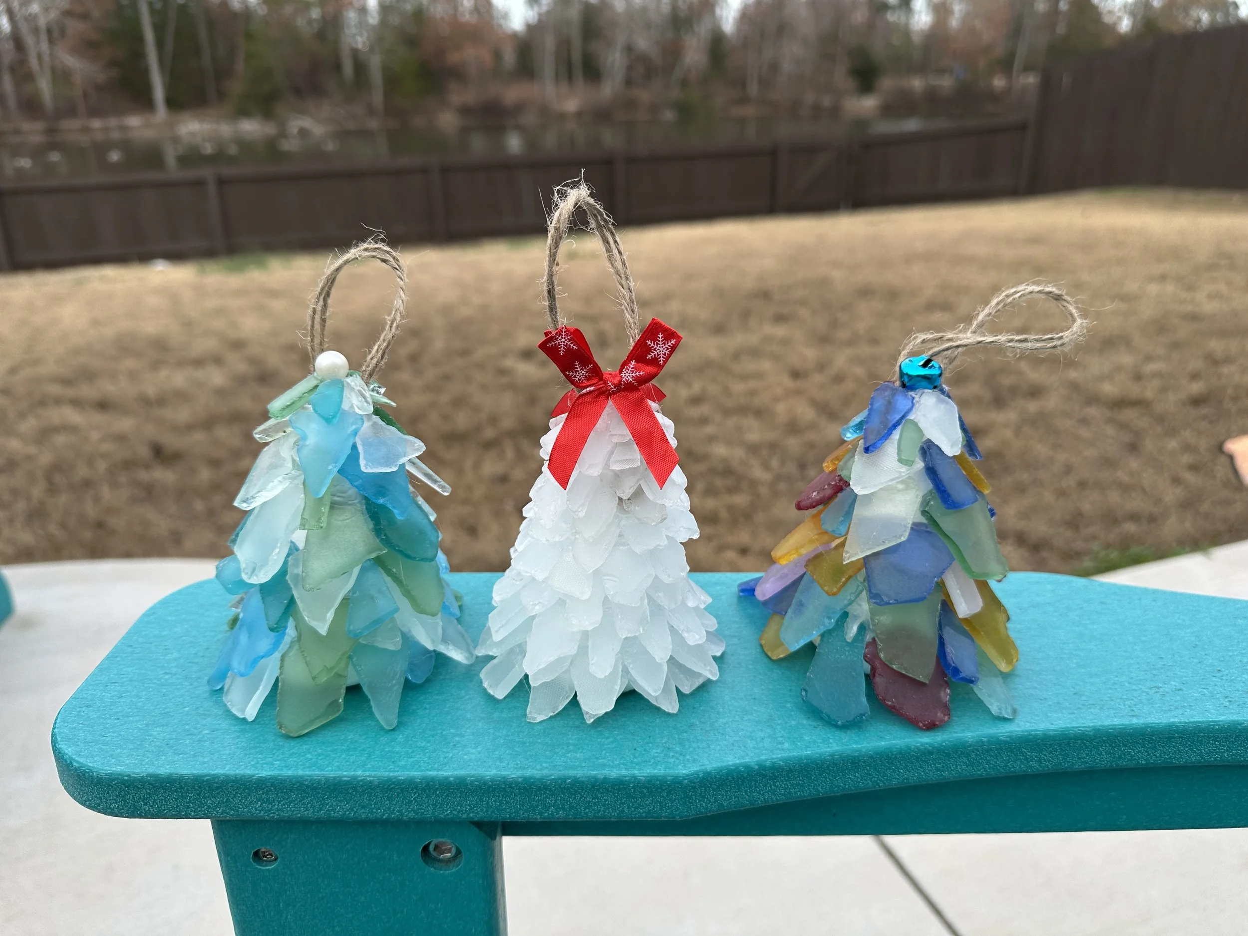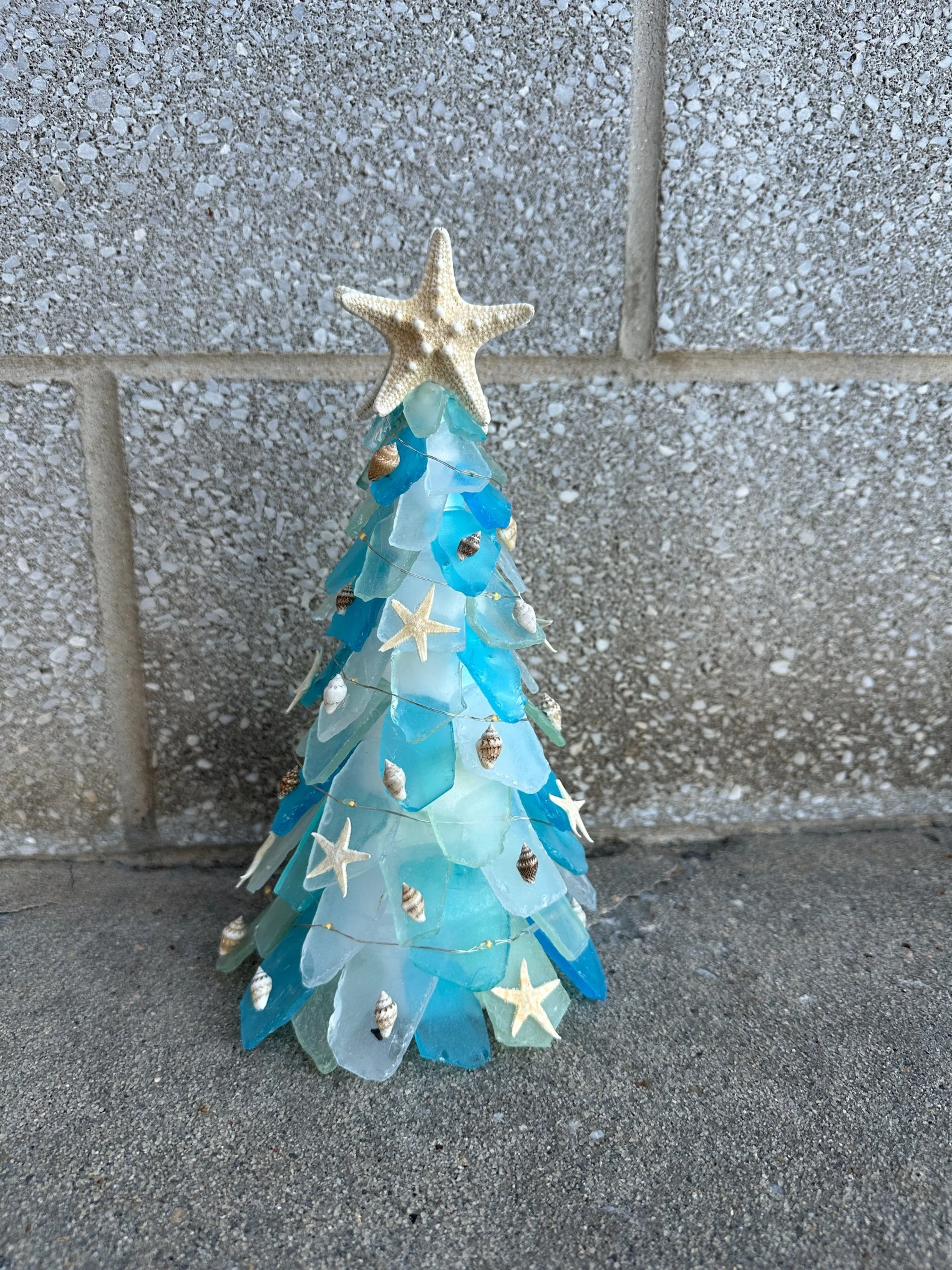 Choose your beach glass colors, ornaments and topper! Fun to gift or display.