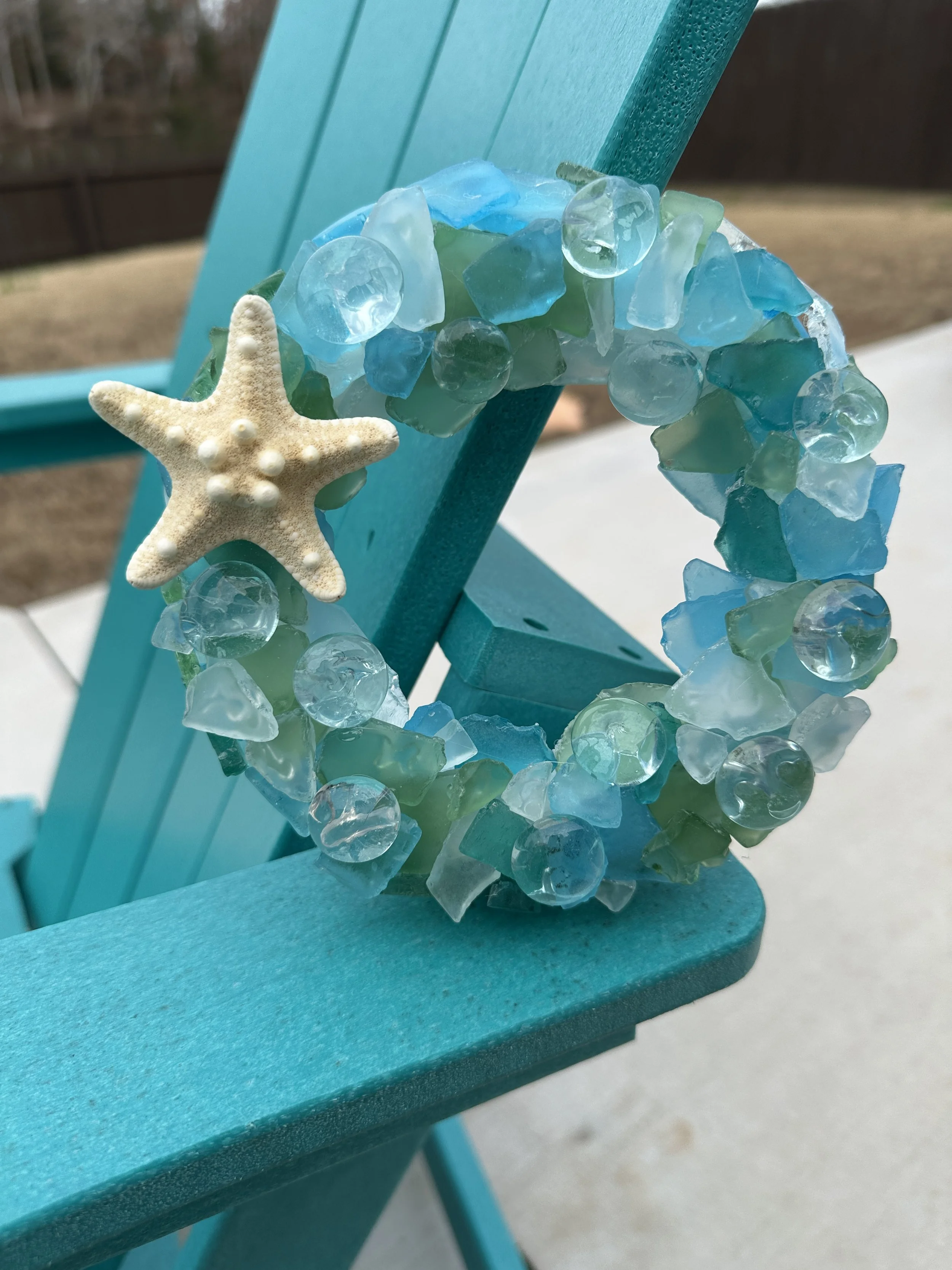 Make a beach glass tree using any color combinations you choose. Decorate with a variety of ornaments and choose a tree topper that fits it’s style. LED lights will be provided as well.
