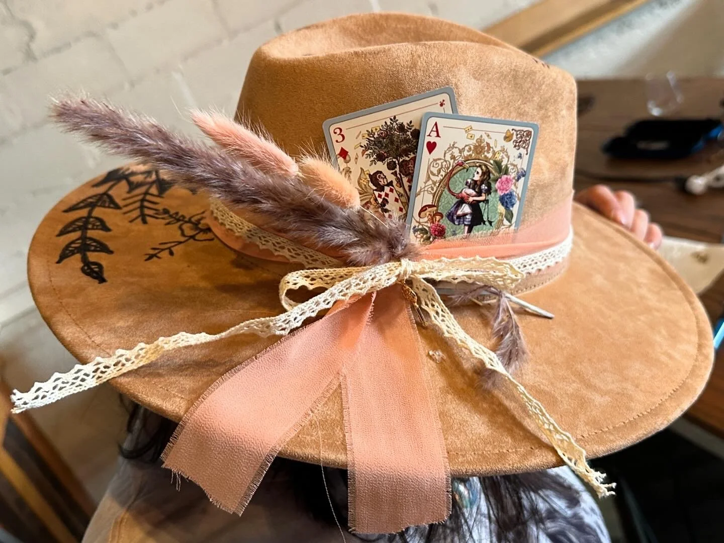 Choose from our wide brim fedoras. You will be able to design your hat to paint or choose from pre-sketched designs.