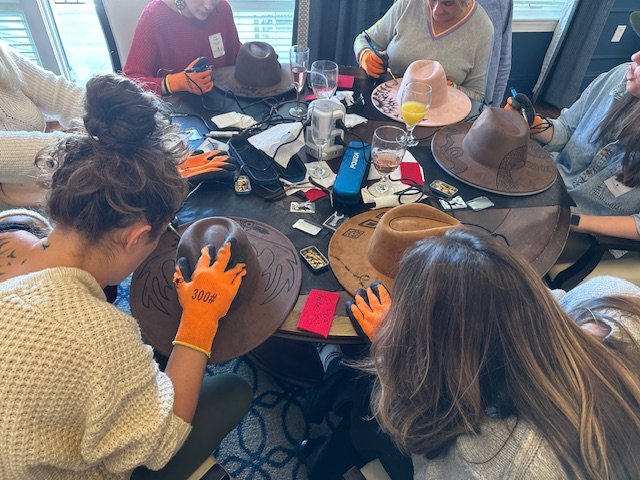 Pyrography workshops allow you to choose which burning project to work on: hats, journals, wood cutting boards or purses.